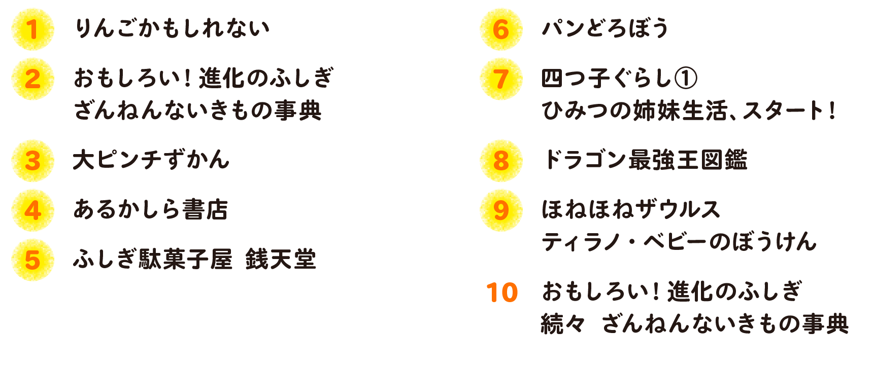順位の数字が黄色になっている本がベスト10です!